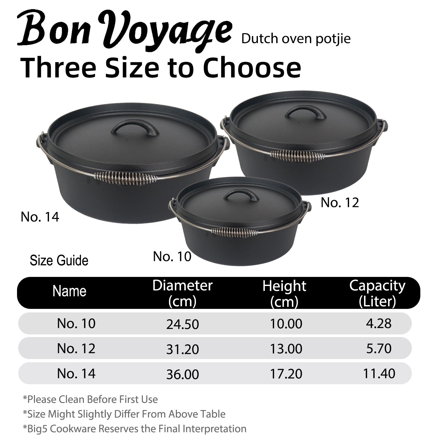 Bon Voyage Cast Iron Dutch Oven Potjie Pot