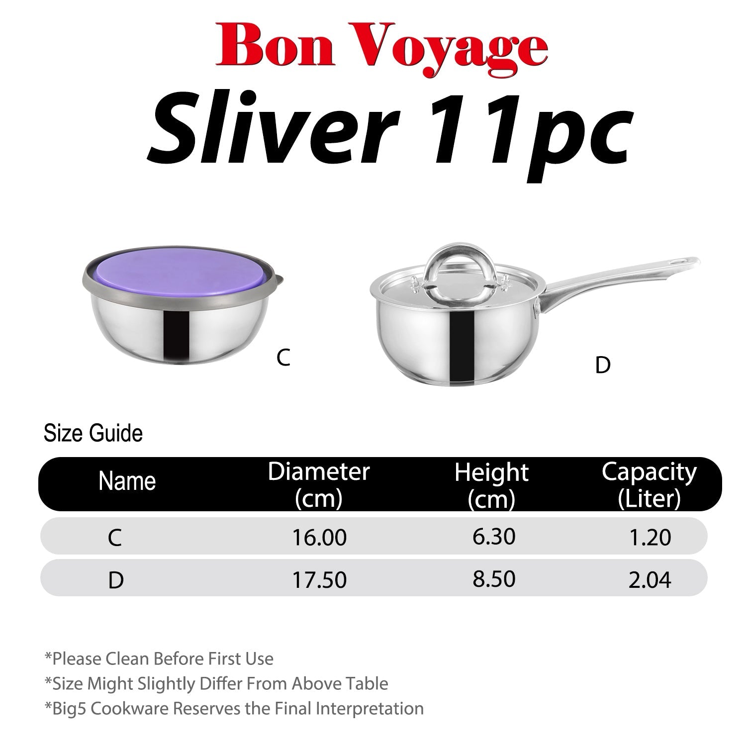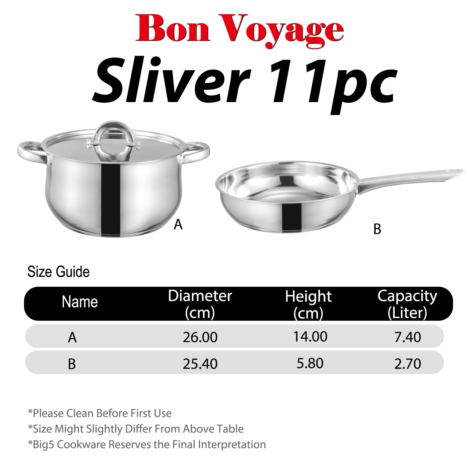 Bon Voyage Silver 11 Piece Stainless Pots Set