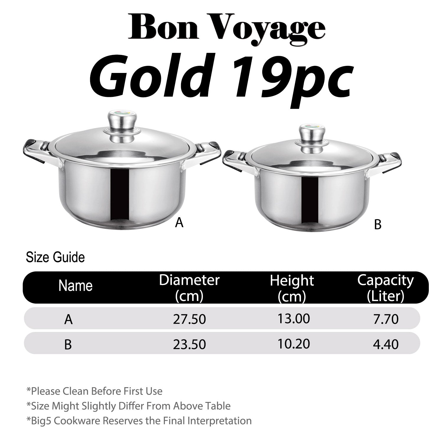 Bon Voyage Gold 19 Piece Stainless Pots Set