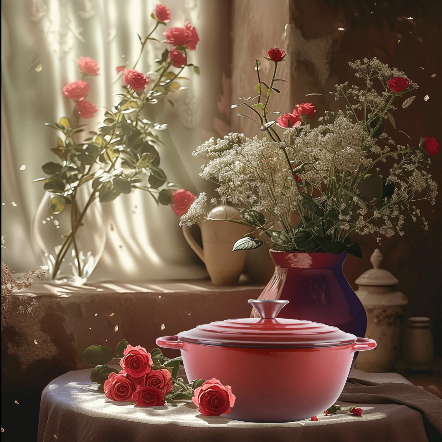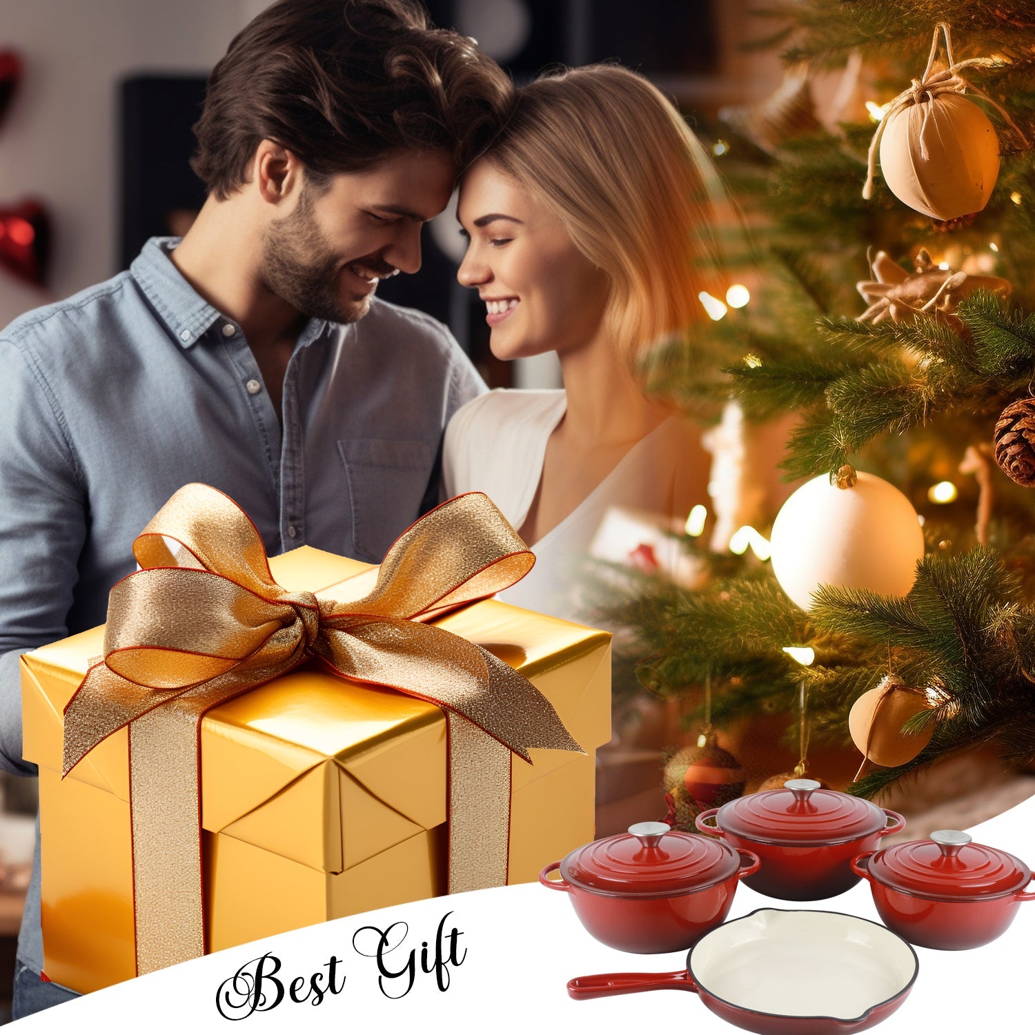 La Cocina 7 Piece African Red Cast Iron Enamel Cookware Set