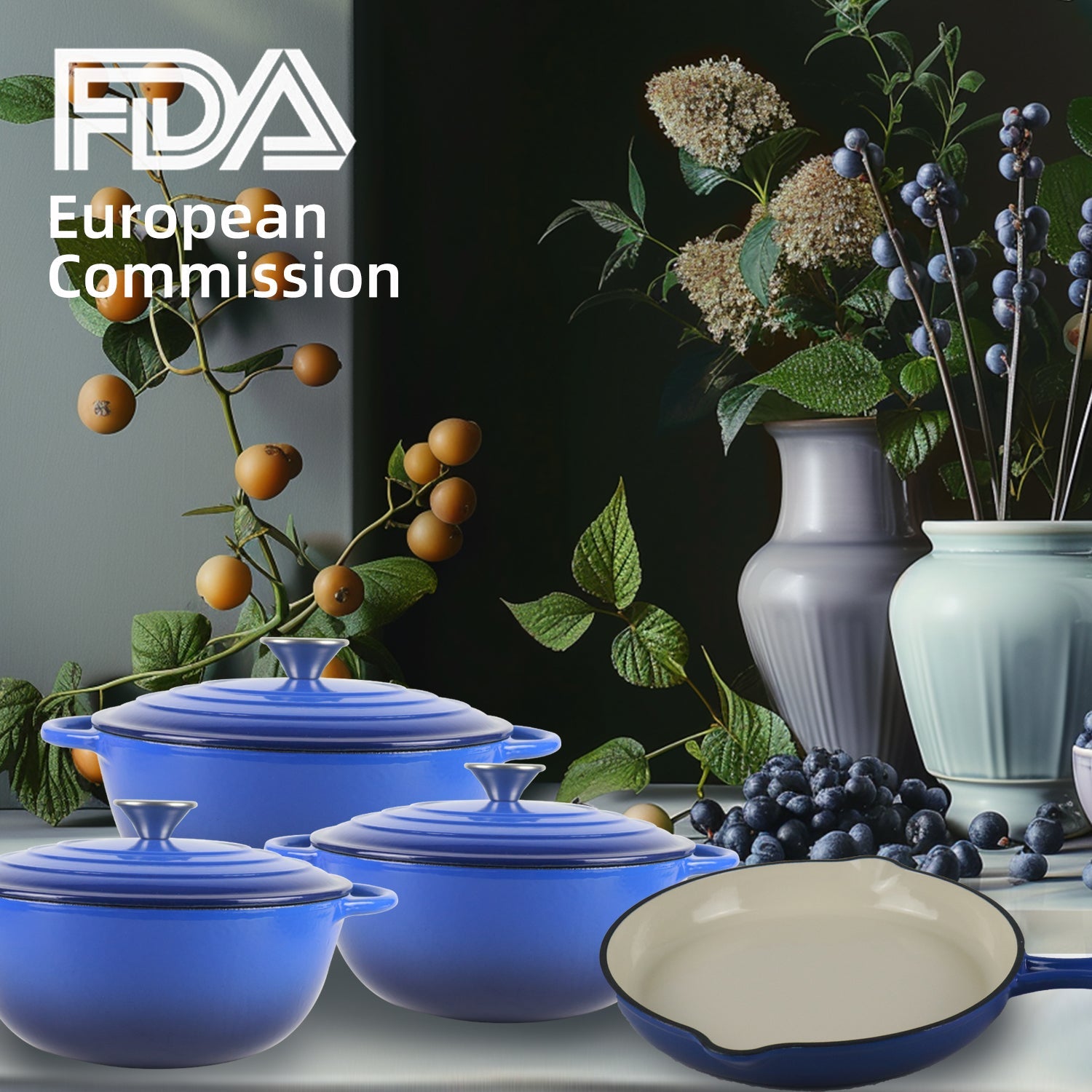La Cocina 7 Piece Amazon Blue Cast Iron Enamel Cookware Set