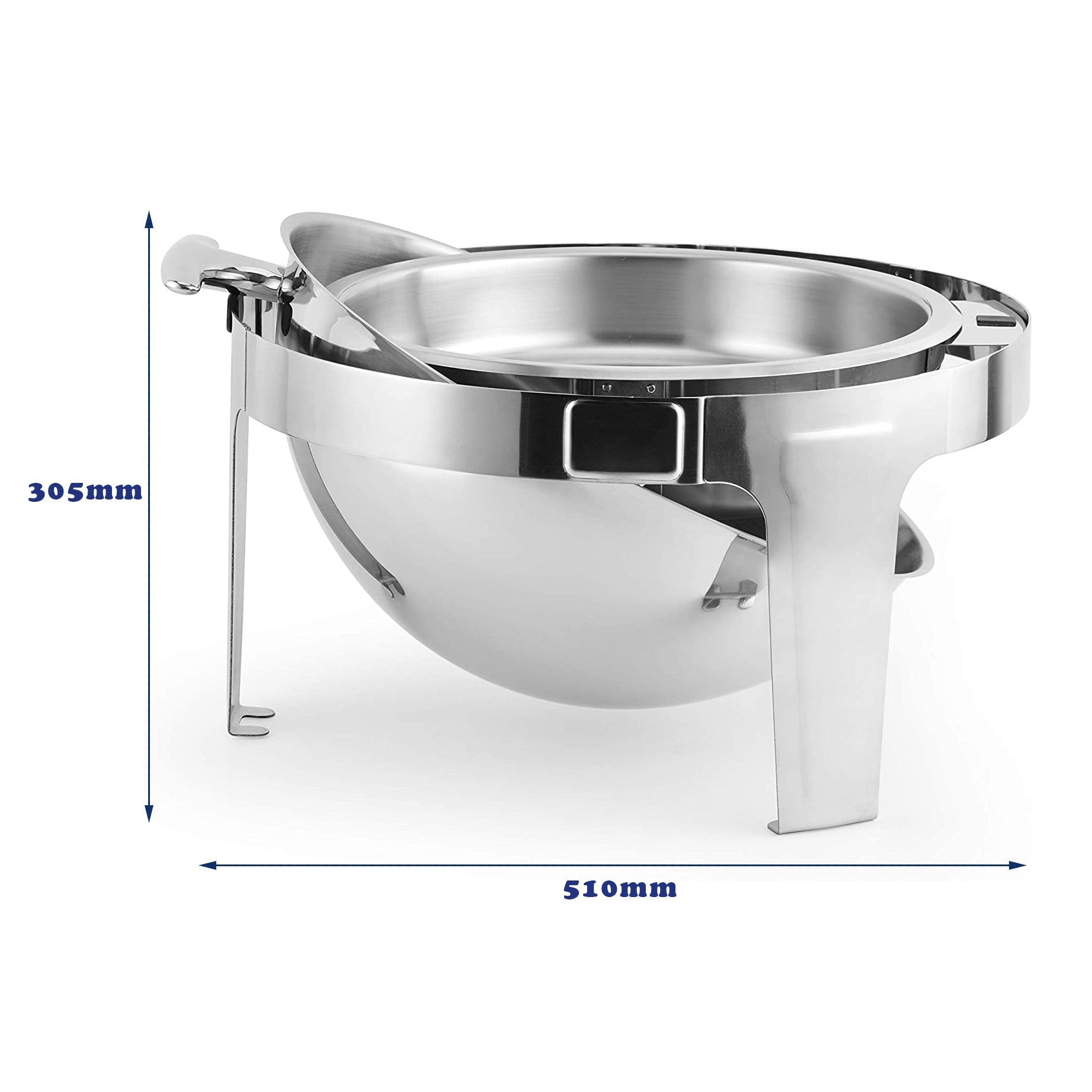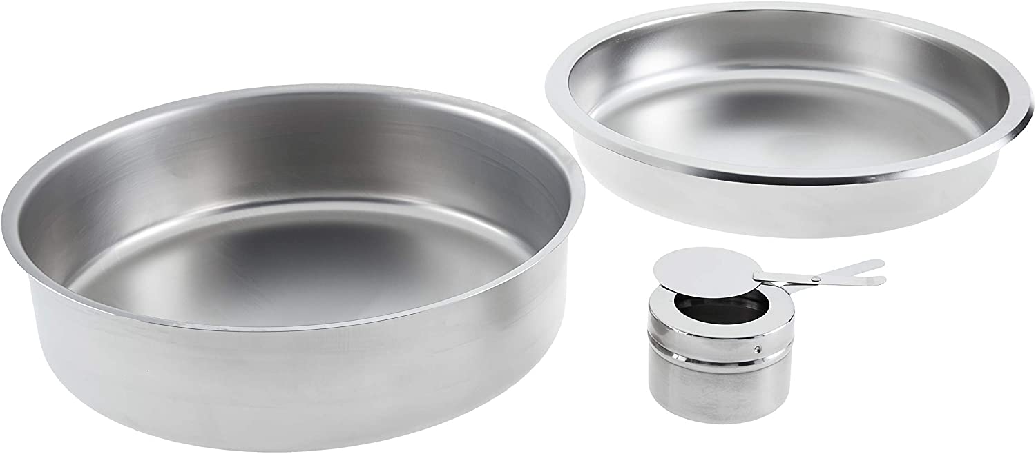 BVC M8 Stainless Steel Roll Top Round Chafing Dish with Stand 6.5 Litre