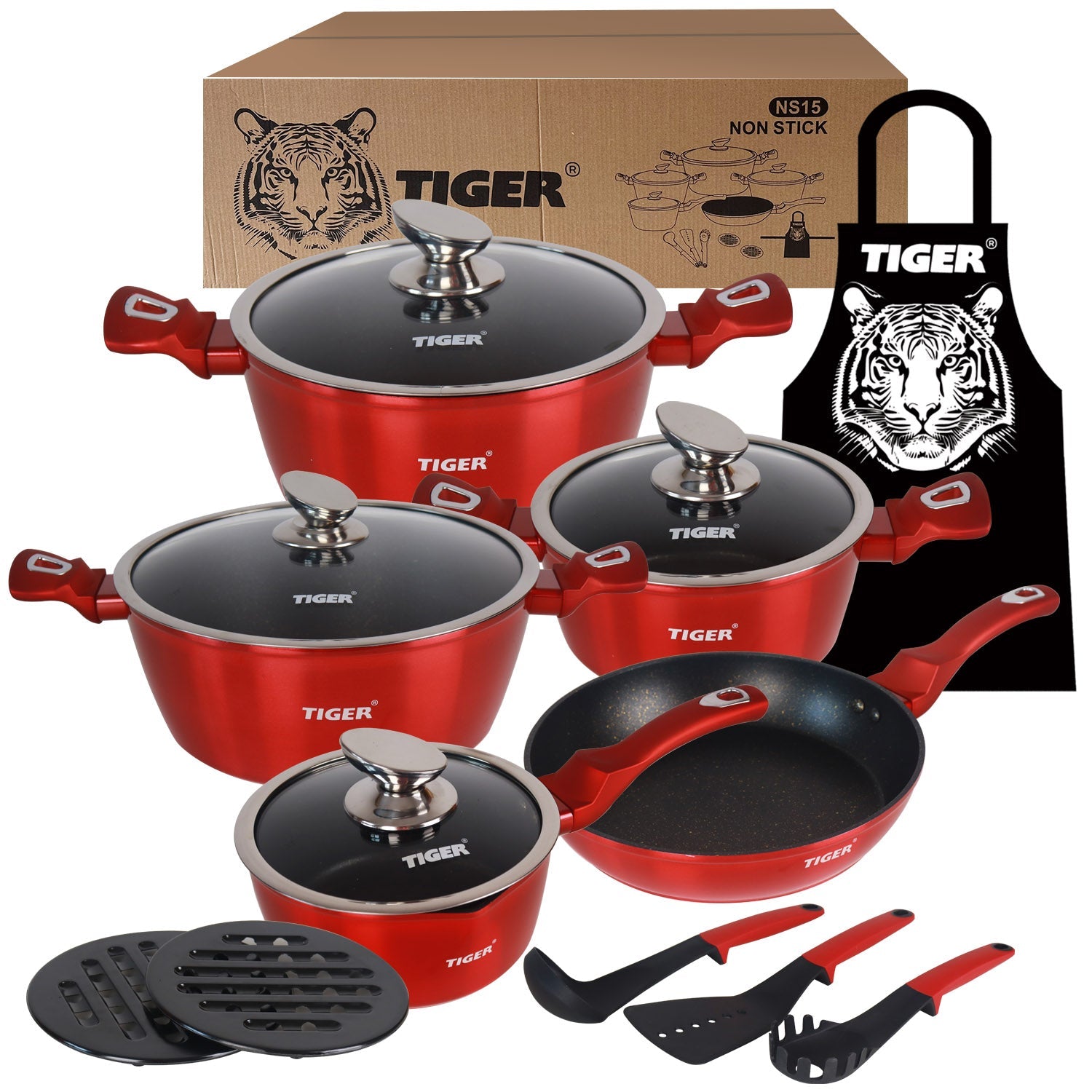 New Arrival!!! Tiger Non-Stick 15 Piece Marble Coating Cookware Set Burgundy